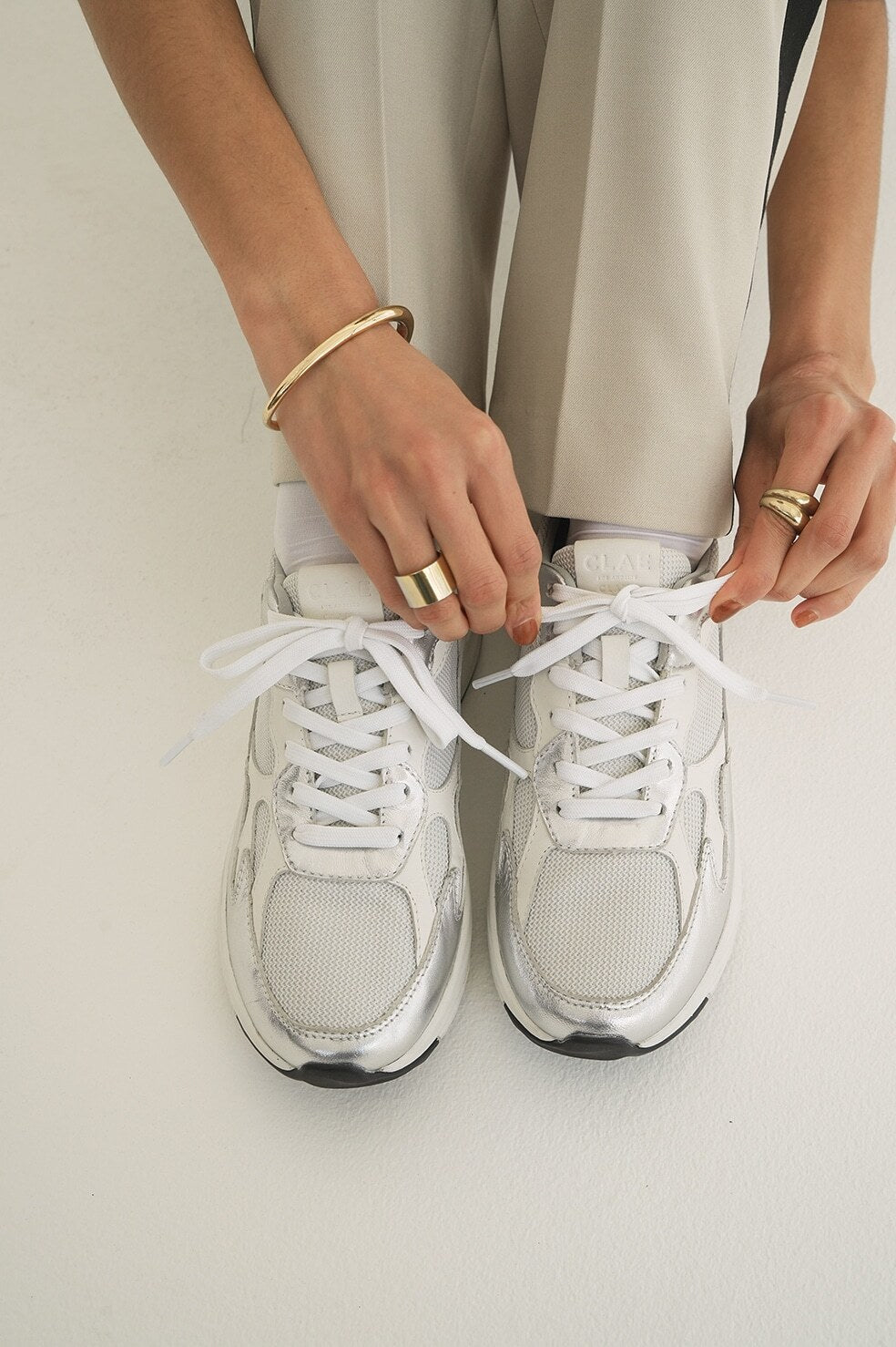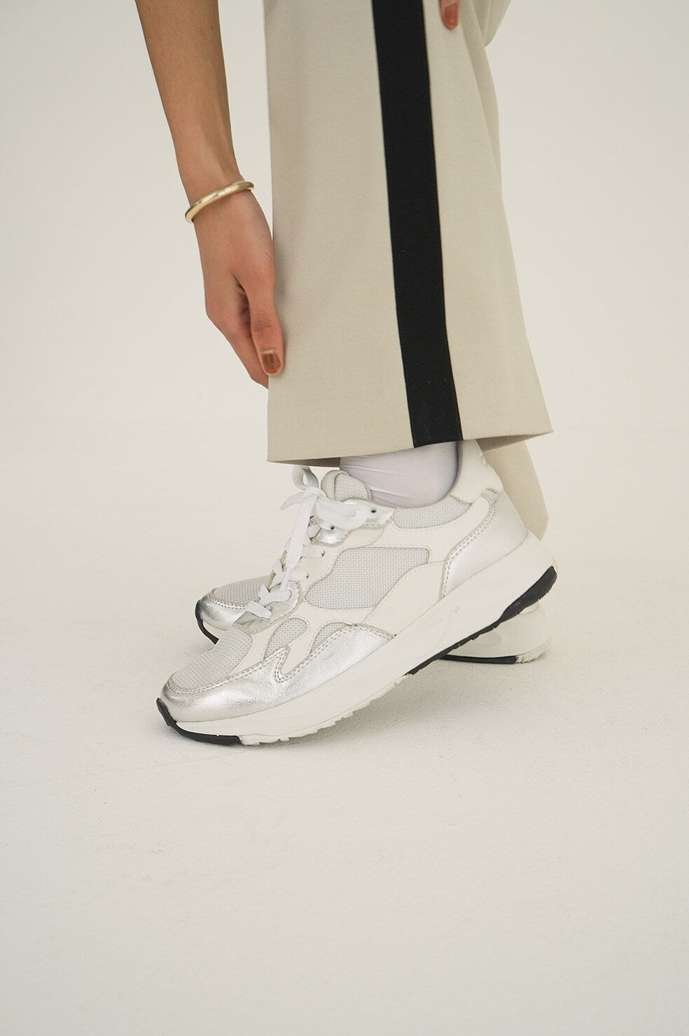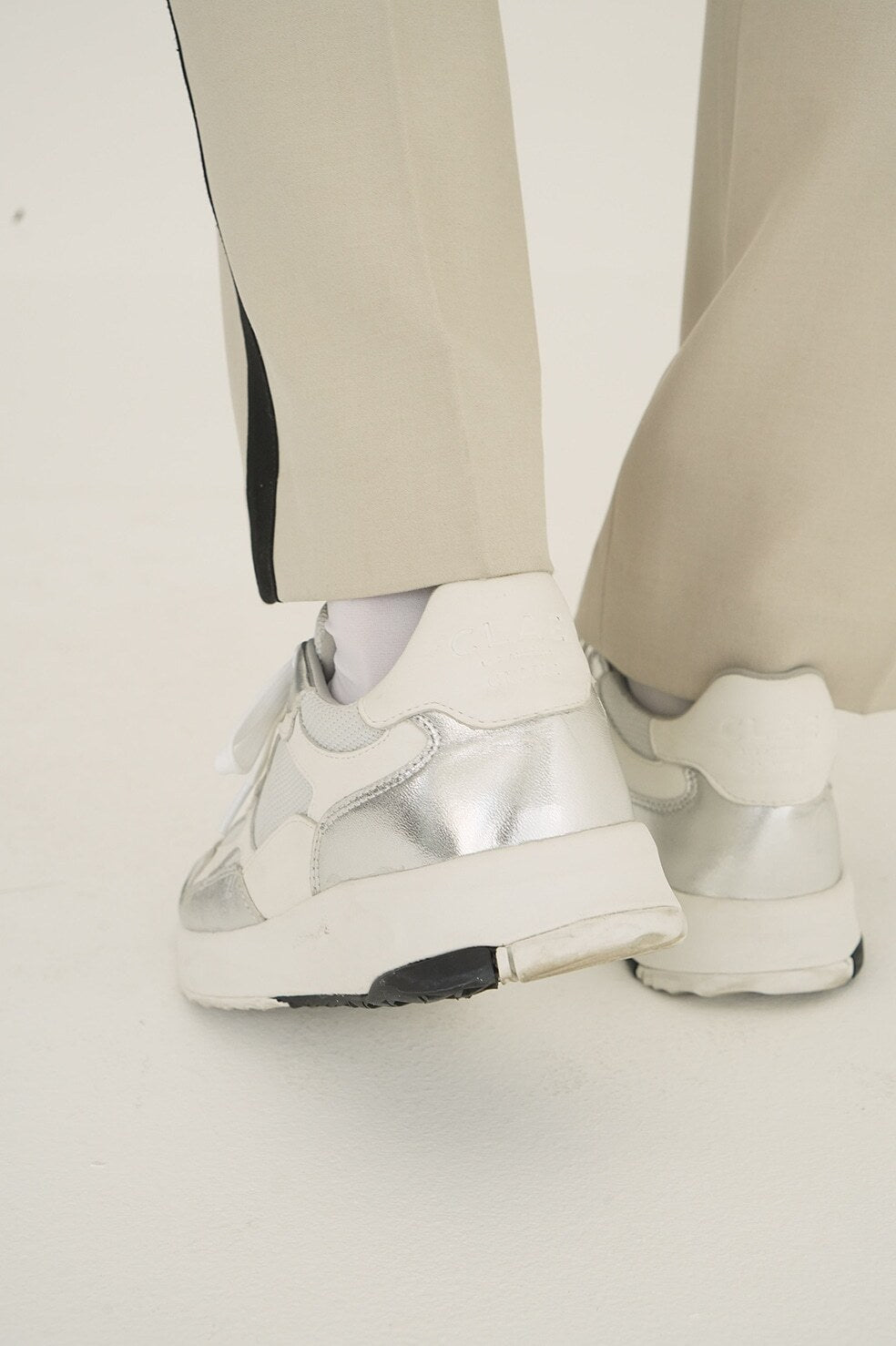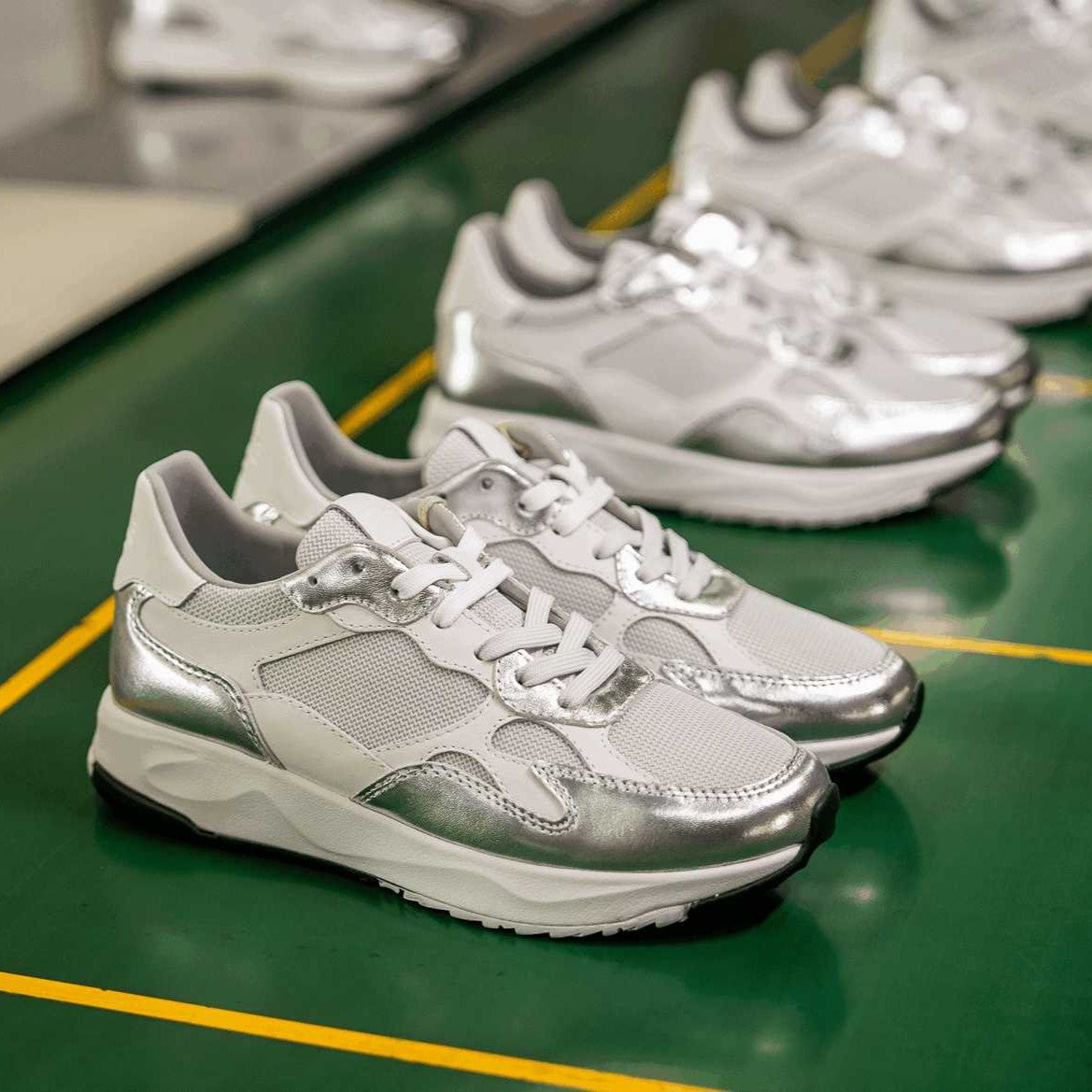 We’ve envisioned a statement shoe that captures the essence of both brands. This exclusive model features striking silver leather on our ZUMA runner, merging functionality with high-fashion aesthetics.
