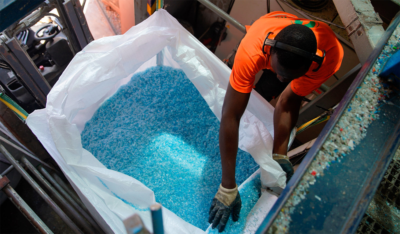 Marine plastic waste is collected with the help of local fishermen, individuals, and organizations and then processed into an innovative recycled fiber: SEAQUAL® YARN. Made from 100% post-consumer recycled polyester.